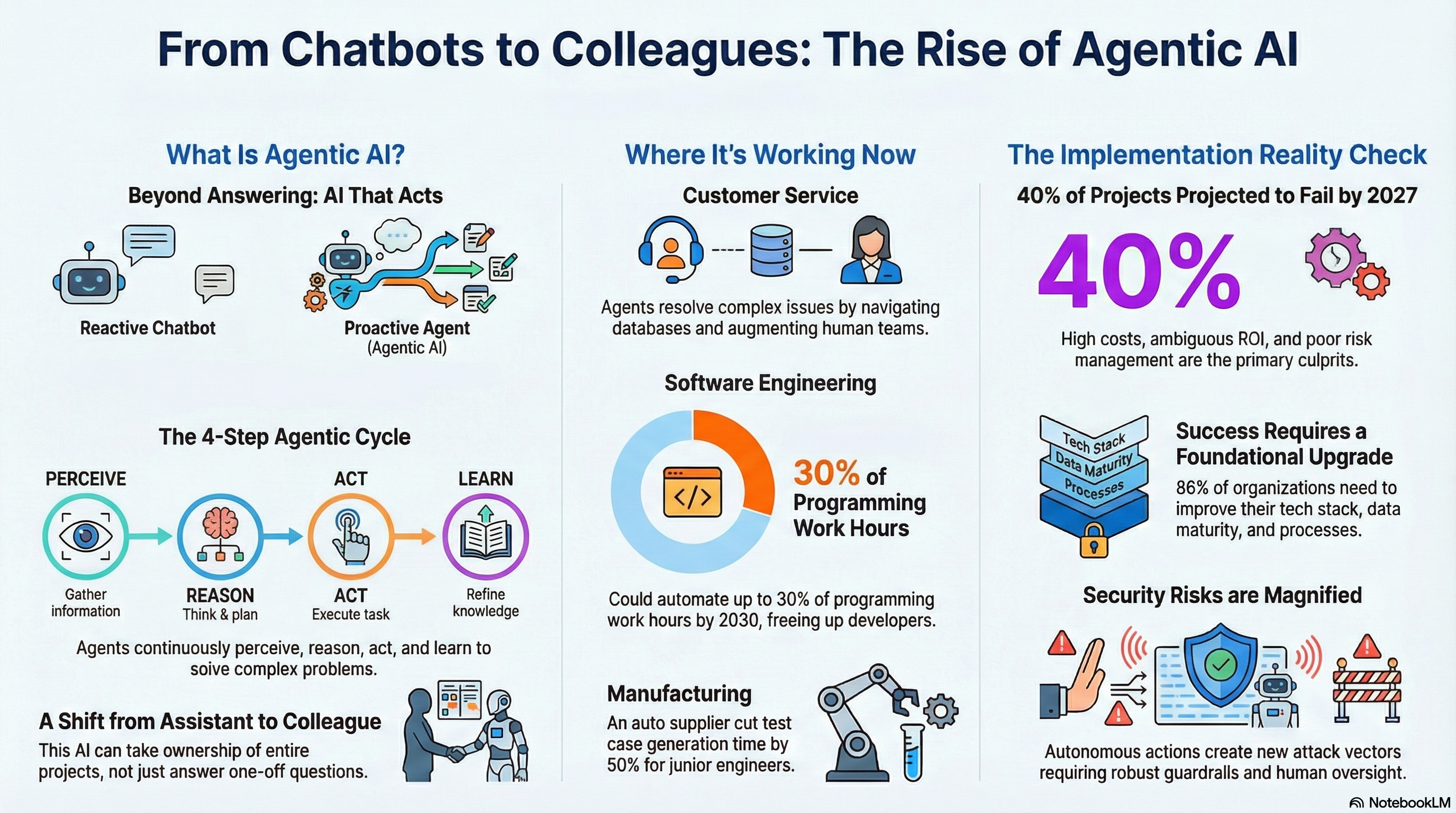 For developers and technical leaders, the opportunity is clear but the path is demanding. You need to start building competency now, even if you’re not ready for full-scale deployment. That means experimenting with agentic frameworks, understanding their limitations, and developing expertise in prompt engineering, model evaluation, and governance.